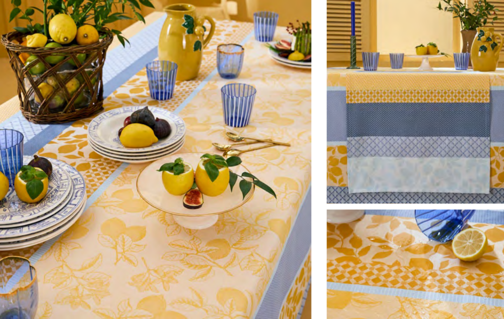 実用性に優れ、撥水加工が施された多彩なデザインのフランス製テーブルクロス、テーブルランナー、ランチョンマット、エプロンといったテーブルリネンに加え、日本で製作されたオリジナル商品も多数展開中。業務用ナプキンも各種取り扱っております。