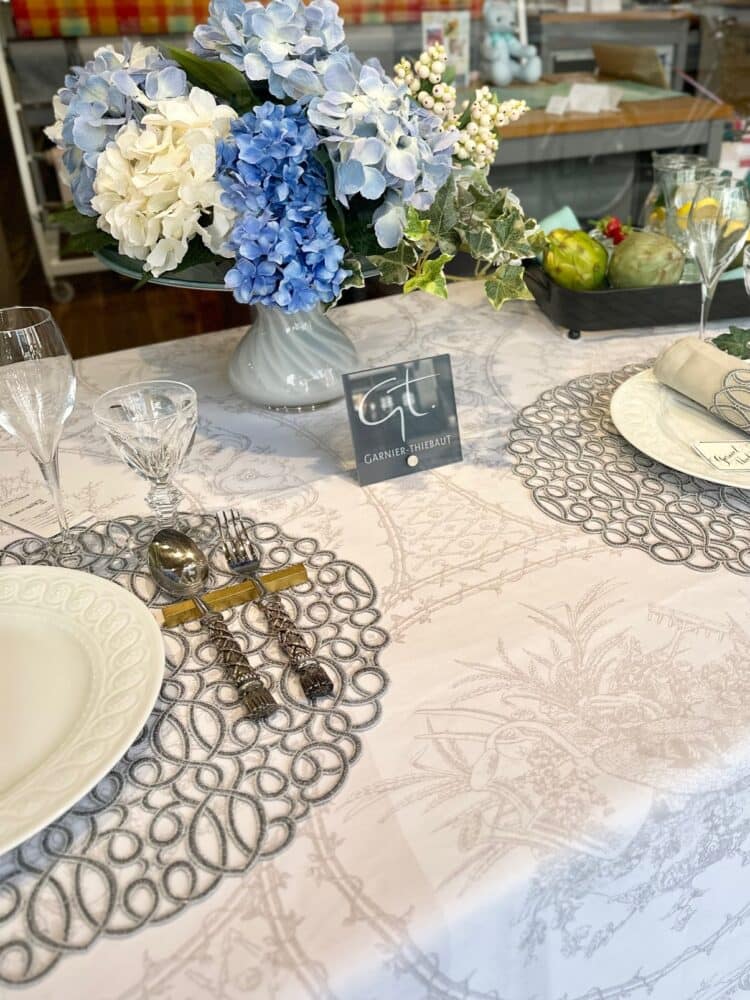 シルバーのオーバルランチョンマットを合わせてコーディネートしています。