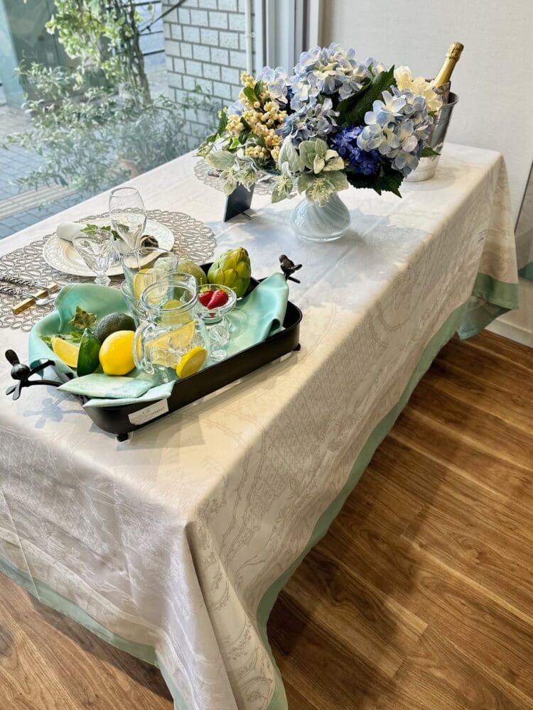 爽やかなブルーの縁取りがアクセントのクロスは