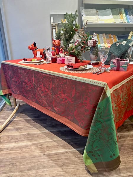 80×150cmのテーブルに174×254cmのクロスを掛けています。