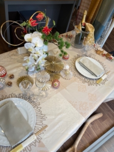 2026年1月の店頭ディスプレイ、第一弾は華やかに新年を迎えるテーブルセッティング。