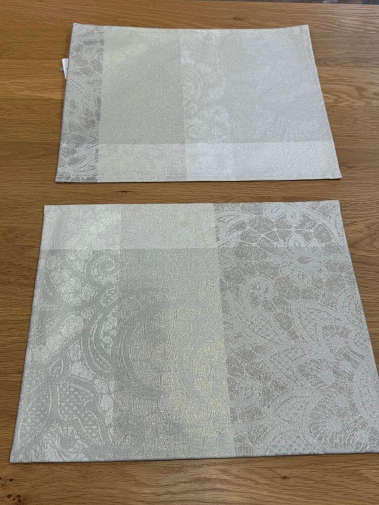 ランチョンマットより一回り小さいサイズ。表面がアクリルコーティング【撥水加工】されたティーマット。