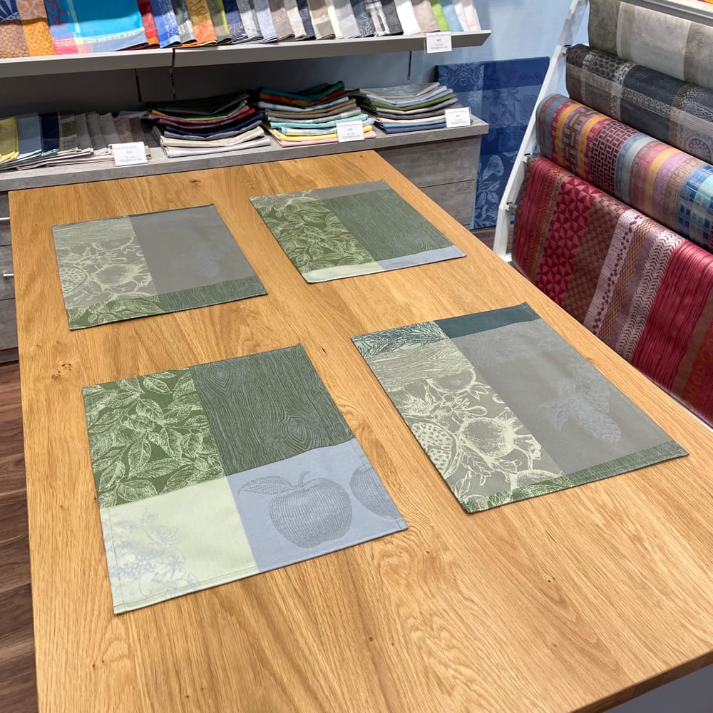 ランチョンマットのおよそ半分くらいのサイズのティーマット。