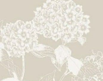 2025春夏新作。人気のオルテンシア=あじさい柄の新色はシックでナチュラルなベージュ系。大胆な柄も落ち着いた配色で季節を選ばずお使いいただけるデザインです。