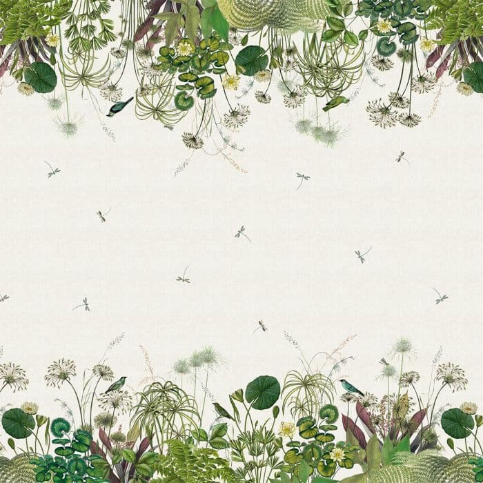 春夏にぴったりの、鮮やかなボタニカルグリーンが目を奪う、魅力的なデザイン。鳥や花が自然の中で巧妙に描かれています。綿と麻を絶妙なバランスで織り上げた生地は、柔らかく優しい風合い。ナチュラルな質感をお求めの方に特におすすめです。(撥水加工はありません)