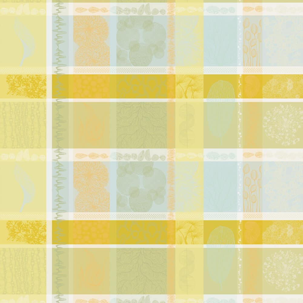 2025春夏新作。一日の始まり。夜明けの光。音の波、根の力強さ、タンポポの繊細さなど、自然の要素からインスピレーションを得たダイナミックなデザインです。イエローを中心に鮮やかな色調が使われており、食卓を明るく彩ります。ガルニエ・ティエボーの熟練した職人による手描きアートワークです。ジャカード織で丁寧に織り上げられています。美しい見た目だけでなく、耐久性にも優れています。