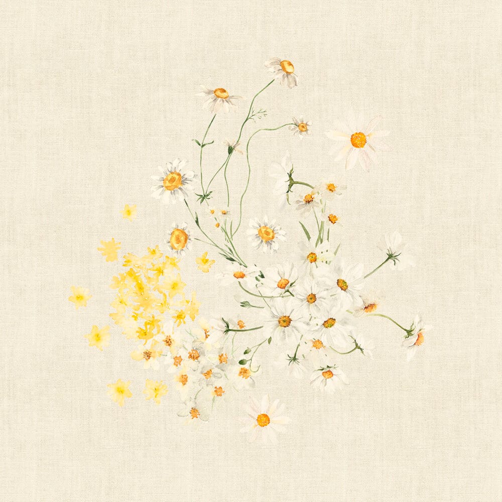 春らしいデイジーのデザインのプリントナプキン。麻の風合いで柔らかい素材感です。