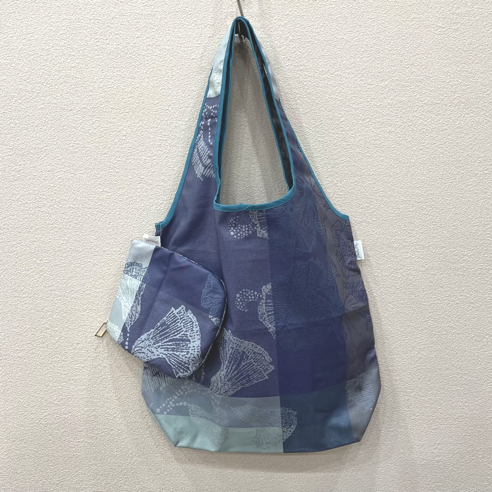 ガルニエ・ティエボーの生地を用いたポータブルバッグ。収納ポーチ付きです。